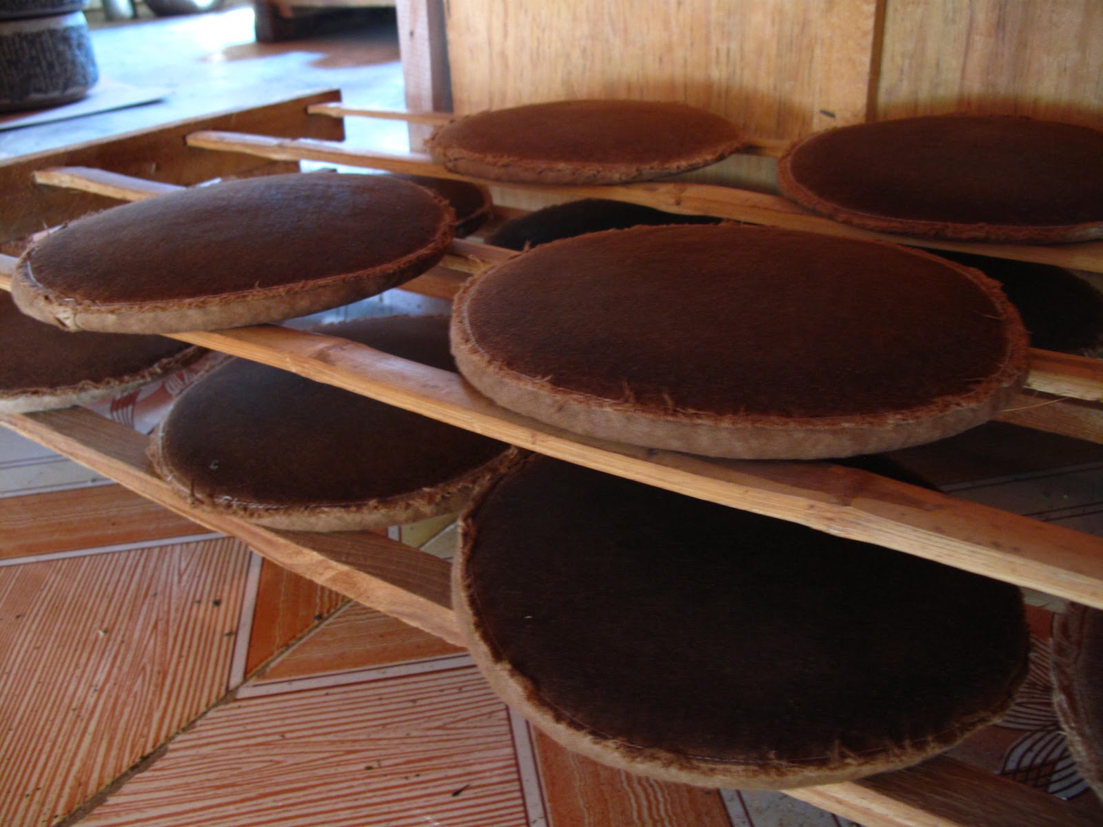 After a period of shade drying, I removed the bags and let them soak up some unadulterated Yiwu sunlight. Even on a beautiful day like this, ours were the only cakes not being put in the drying room or 烤房 "kao fang". I have heard cakes dried in a "kao fang" taste different from those dried in the sun, but have yet to experience this first hand. Personally, it just feels better to know your tea was naturally dried, as tradition & nature intended.