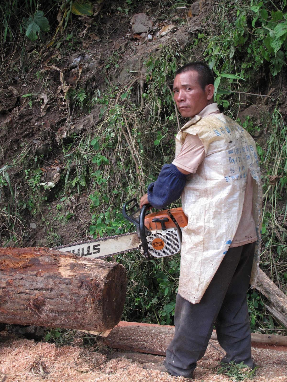 caught my breath, Mr. Ma used his machete to chop some bamboo into a walking